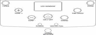 The inner water tank in the air conditioner has a water level safety switch. When the water level reaches an anticipated height in the water tank, the water full indicator lamp lights up.